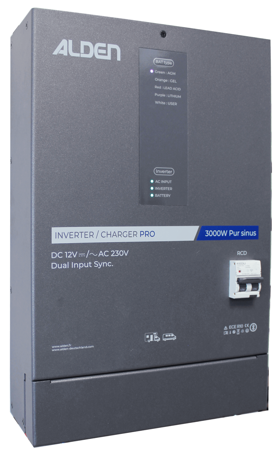 - Dual Sync Input : sortie 230 V combinant batterie 12 V et source externe 230 V